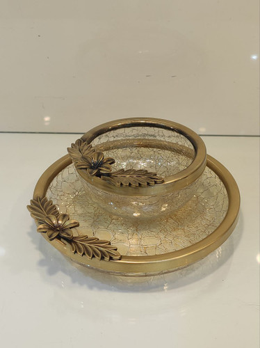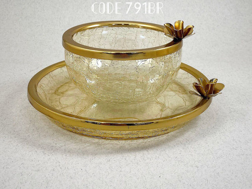 پیش دستی و پیاله طلایی طرح گلناموجود