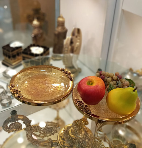 میوه خوری پایه دار طلایی طرح گل کد117تماس بگیرید