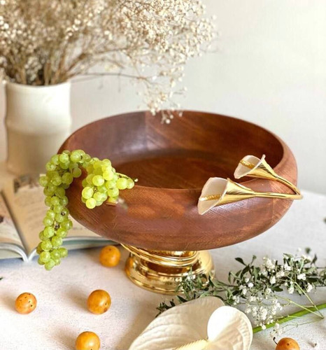 میوه خوری پایه دار چوبی_برنجی گل شیپوری کد0075تماس بگیرید