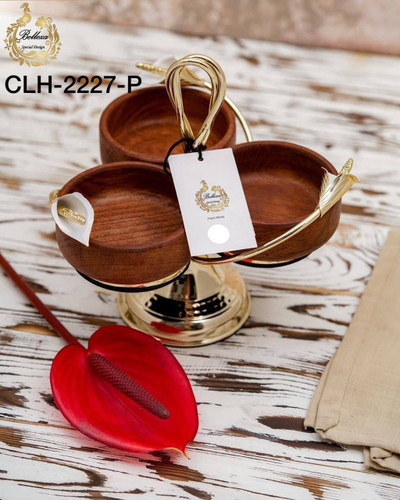 اردو/مزه خوری پایه دار ۵خونه چوبی_برنجی گل شیپوری کد0098تماس بگیرید