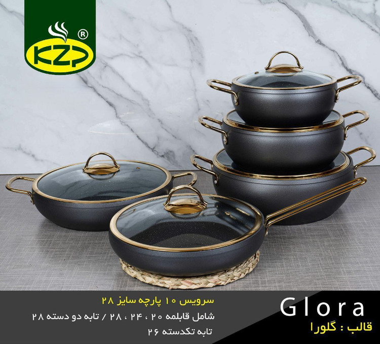 سرویس قابلمه گرانیتی 10 پارچه برند KZP رنگ طوسی