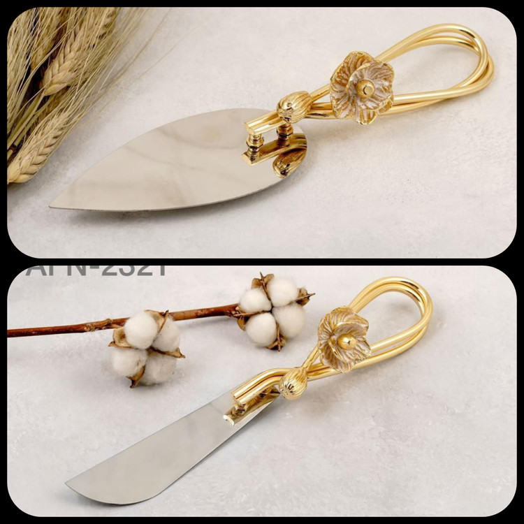ست چاقو کیک استیل برنج گل شقایق کد2321