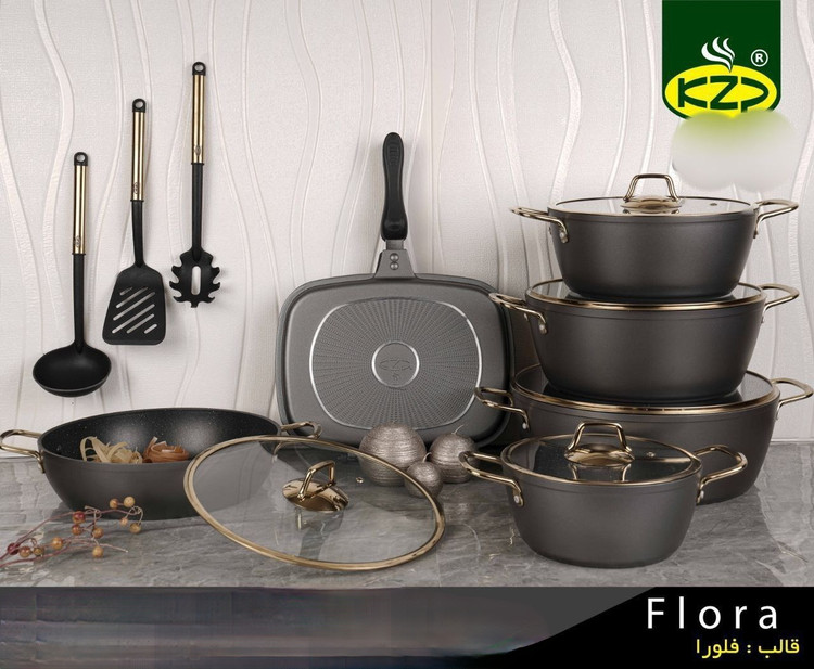 سرویس قابلمه گرانیتی 12_15_17پارچه برند KZP رنگ طوسی کد00099