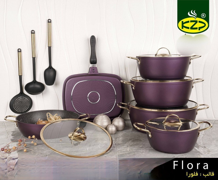سرویس قابلمه گرانیتی 12_15_17پارچه برند KZP رنگ بادمجون کد00095