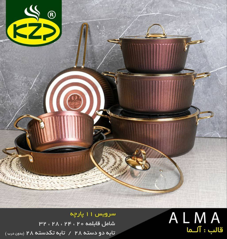 جنس بدنه قابلمه و تابهای کی.زد.پی (KZP) همگی از جنس آلومینیوم با پوشش گرانیتی کاملاً نچسب است.