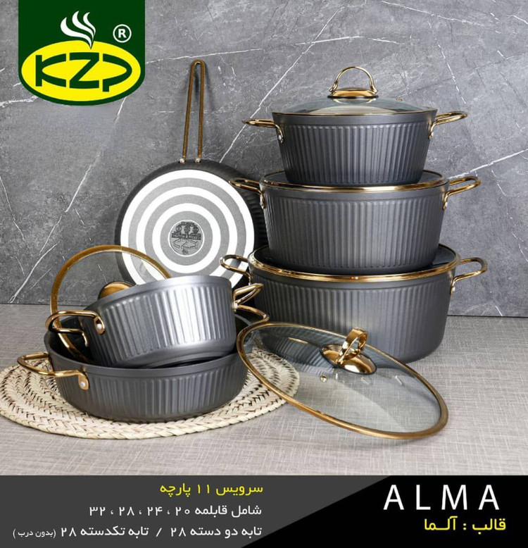 جنس بدنه قابلمه و تابهای کی.زد.پی (KZP) همگی از جنس آلومینیوم با پوشش گرانیتی کاملاً نچسب است.