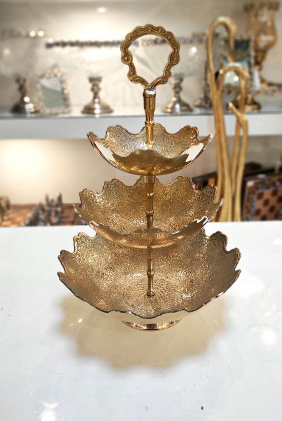 •ظرف سه طبقه پایه دار برنجی