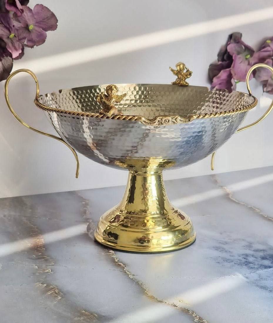 میوه خوری گود پایه دار فرشته استیل برنج سایز متوسط کد1219