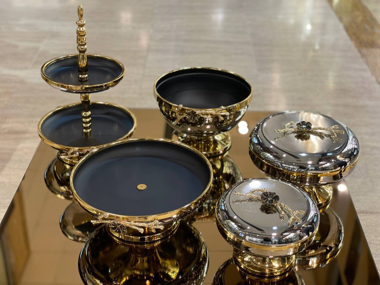 سرویس 5 تیکه طلایی سیلور مدل فلاور برنجی کد1459