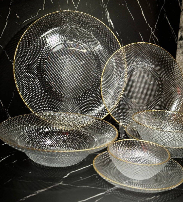 سرویس غذا خوری بلوری ۶نفره سولو پیکسل لبه طلایی کد1395