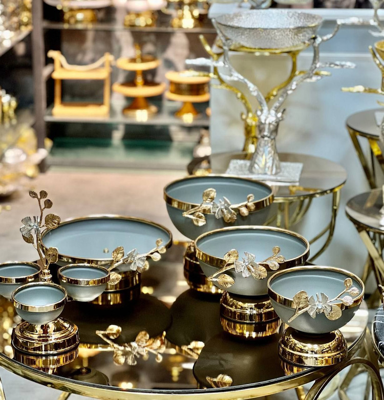 سرویس 5 تیکه طلایی طوسی مدل ارکیده برنجی کد1460