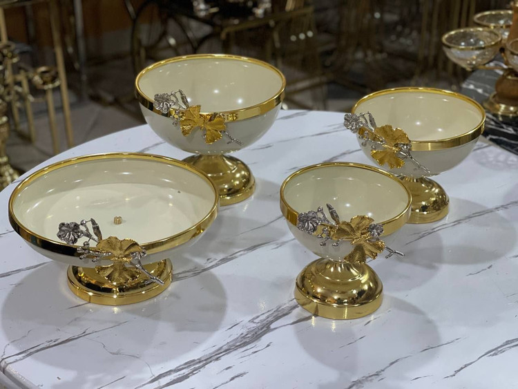 سرویس پذیرایی 4 تیکه گل و پروانه برنجی کرم طلایی کد1086