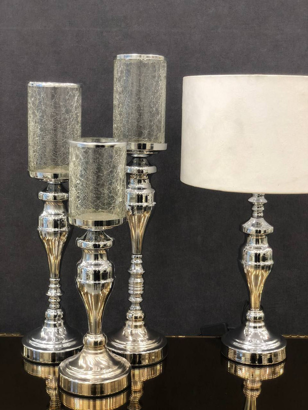 ست جاشمعی و آباژور رومیزی رنگ سیلور کد11159