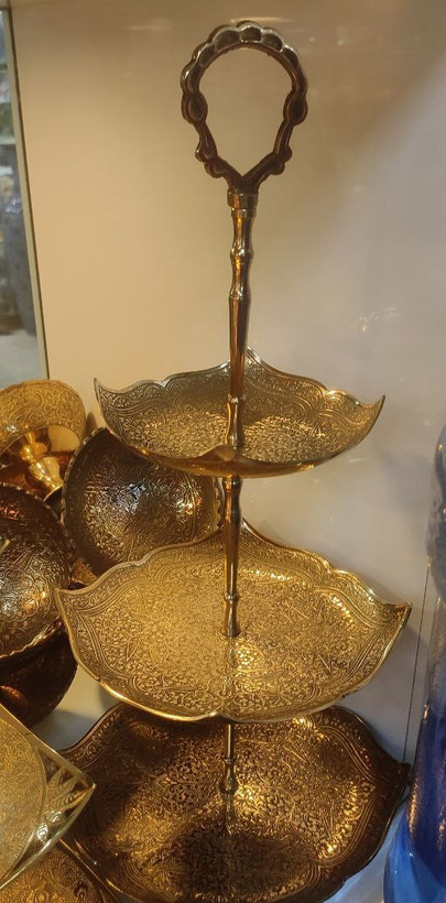 ظرف پذیرایی مربع 3طبقه برنجی هندی کد1198