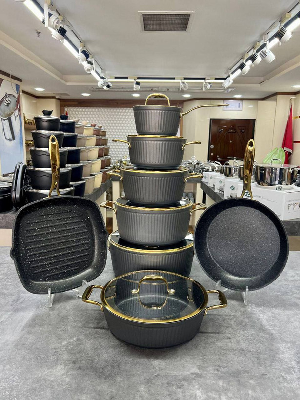 سرویس قابلمه گرانیتی 14 پارچه برند آلما رنگ طوسی کد1098