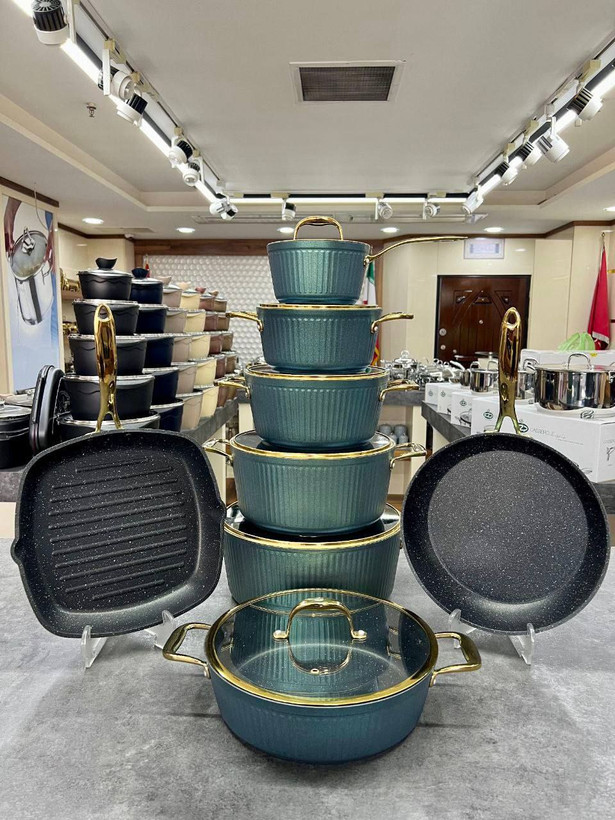 سرویس قابلمه گرانیتی 14 پارچه برند آلما رنگ سبز کد1095