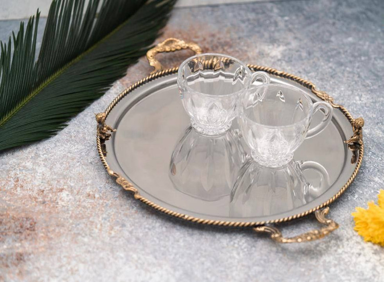 سینی گرد دسته دار پایه دار فرشته استیل برنج هندی کد1089