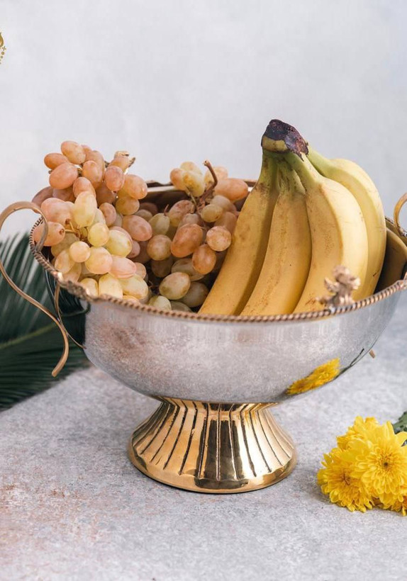 میوه خوری گود پایه دار دسته دار فرشته استیل برنج هندی سایز بزرگ کد1082