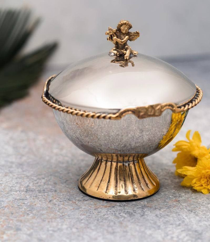 قندان دربدار پایه دار فرشته استیل برنج هندی کد1073