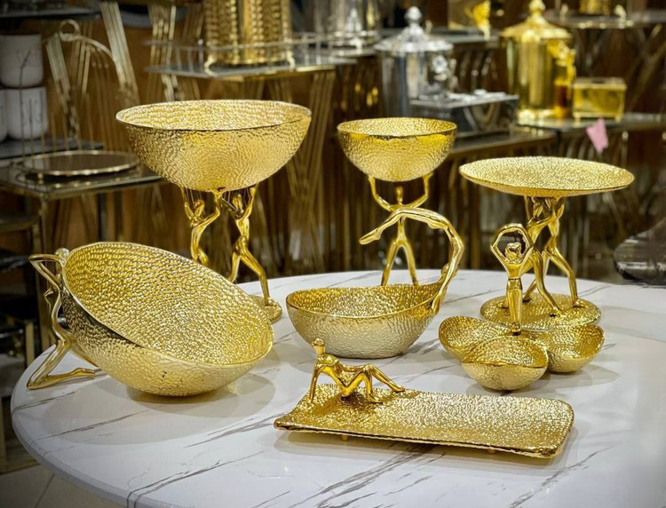 سرویس ۷تیکه پذیرایی مدل ژستو چکش کاری شده طلایی آلمینیوم کد336