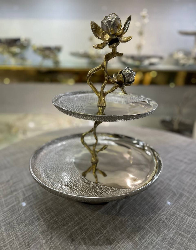 شیرینی خوری دو طبقه طرح گل نیلوفری آلمینیوم کد5899