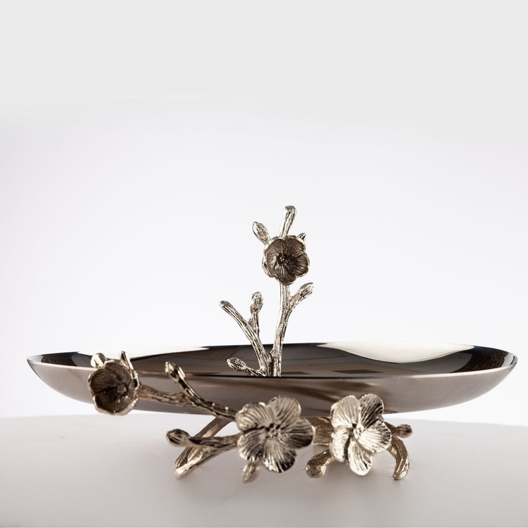 شیرینی خوری تک طبقه طرح گل شکوفه استیل برنج کد5909