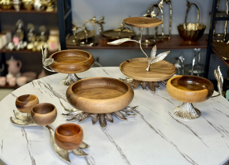 سرویس 5 تیکه پذیرایی چوب گردو سیلور مدل برگ کد0044