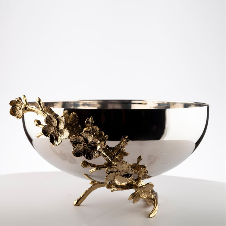 میوه خوری گود طرح گل شکوفه استیل برنج سیلور طلایی کد5905